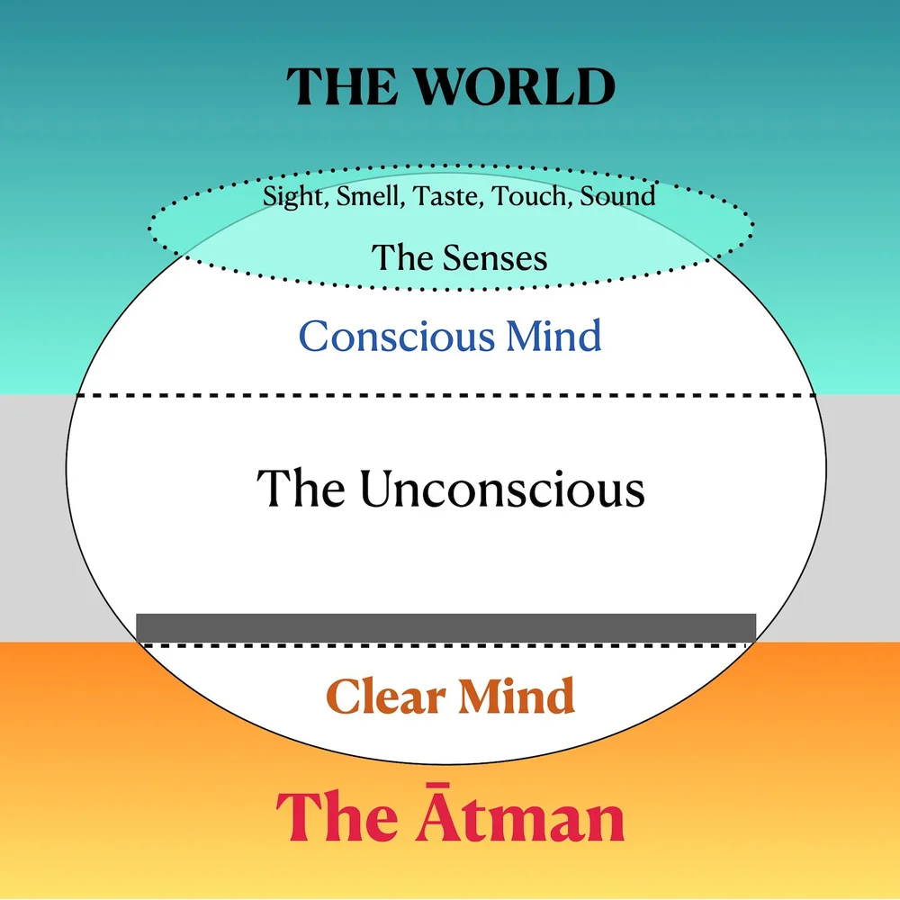Beyond the unconscious mind is the “clear mind,” the part of the mind that is transparent and calm, and it is here that the light of the Ātman shines most brightly.